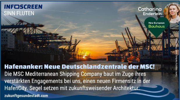 Das sind ja gute Neuigkeiten - so kurz vor dem 836. Hafengeburtstag! Die MSC Mediterranean Shipping Company baut ihre Präsenz in Deutschland signifikant aus und zwar in der Hamburger HafenCity! Die Gesellschaft wird ihre neue Deutschland-Zentrale auf dem Baufeld 73 in der Stockmeyerstraße errichten. Neben Platz für mehr Mitarbeiterinnen und Mitarbeiter sollen auf dem Grundstück am Ericusgraben nördlich der Stockmeyerstraße, östlich des Lohseparks in der zentralen HafenCity auch mindestens 800 Quadratmeter öffentlich zugängliche Räumlichkeiten entstehen. Nachhaltig gebaut - versteht sich!