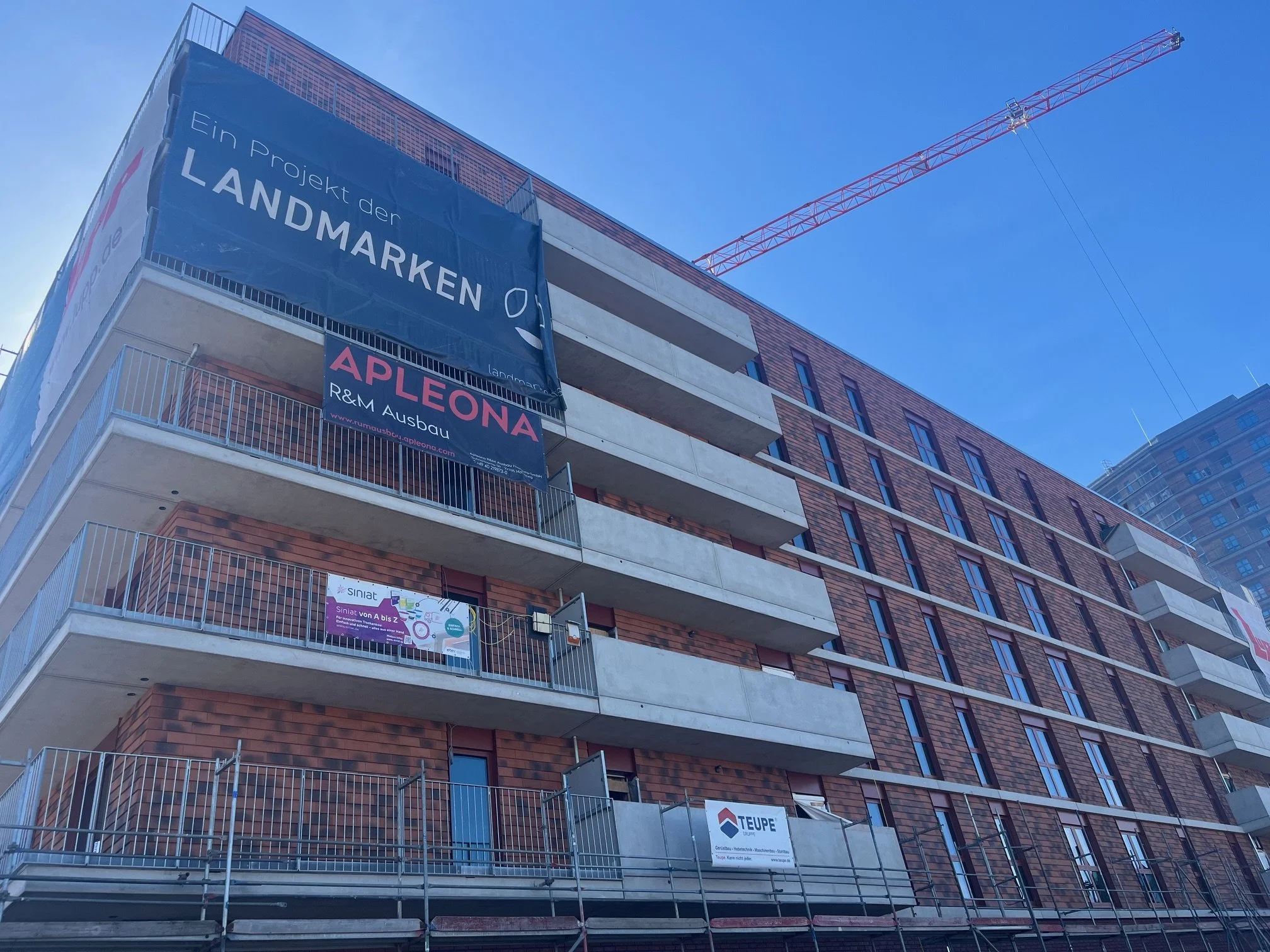 Das, was sich hier anhört, wie der Merrettichbaum, ist an dieser Stelle ein neues, nachhaltiges Wohnprojekt der Landmarken AG. Bezugsfertig soll das Projekt noch in 2026 sein. Das lässt sich hier und heute bereits deutlich erkennen. Ich habe mich aufgemacht, um mir mit vielen anderen Akteur:innen aus der Architektur- und Baubranche anzusehen, wie weit das Ganze schon ist und wie der Einsatz von recycelten Materialien - tatsächlich umgesetzt - ästhetisch und nachhaltig gelingen kann. “Echt gut!”, lässt sich schnell feststellen.